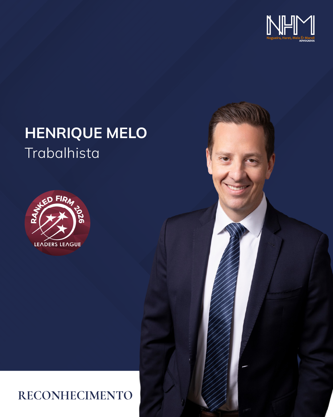 O NHM Advogados, pelo segundo ano consecutivo, foi reconhecido pela Leaders League